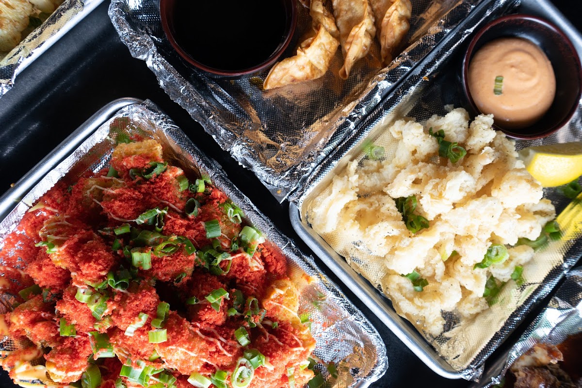 Aside from their savory BBQ plates, MGD Korean BBQ also serves mouthwatering appetizers like Fried Gyoza, Flash Fried Cauliflower, and Ghetto Tots. Customers have praised the attentive service and the diverse sauce selection that accompanies the dishes.